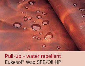 con agentes de impregnación para cueros de flor corregida y en los acabados aplicados por