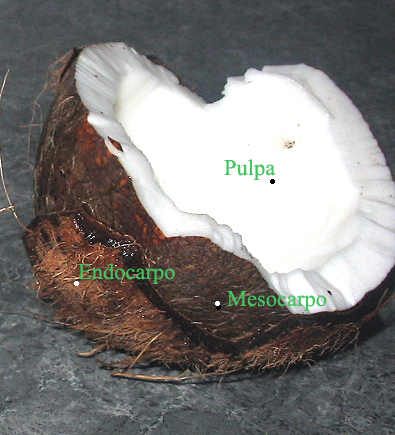 cascara aun más dura que concentra la pulpa y el agua, ambos consumibles.