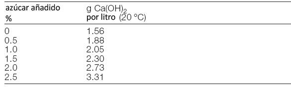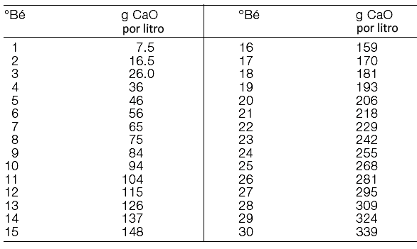 Densidad y contenido de calcio de la lechada de cal a 15 ° C.