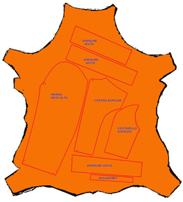 Antes de comenzar a encajar debemos estudiar el tamaño y forma de las pieles y patrones para saber dónde se deben encajar las piezas más importantes
