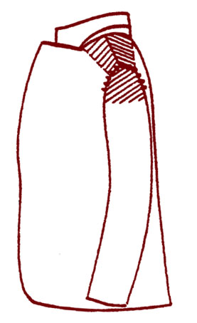 la mano derecha a solapa, doblar solapa y cuello hacia fuera de forma que