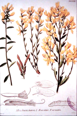 Retama de tintoreros. Imagen: Expo. Sederías S XV - XVI; Museo del Carmen, Valencia, Es., 2011. Foto Edym. |