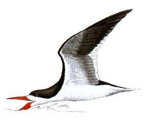 blanco. En vuelo destacan las alas muy largas y puntiagudas.